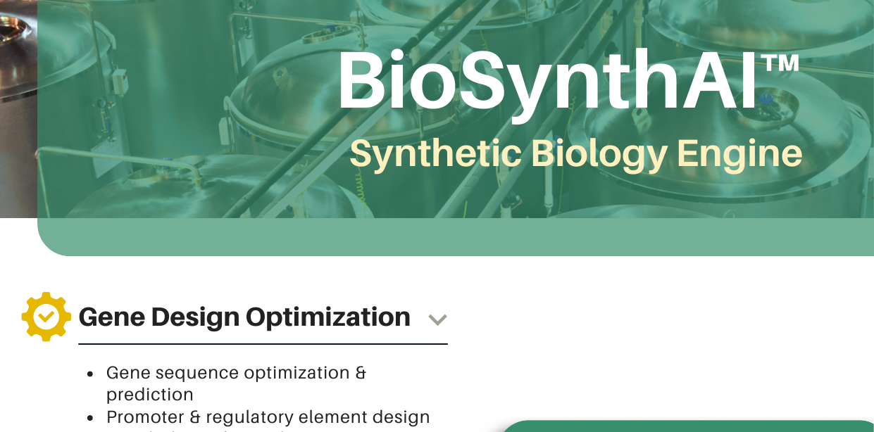 BioSynthAI® enables the design of engineered biological systems. From metabolic pathway optimization to synthetic gene circuits, our AI accelerates the development of bio-manufactured therapeutics and materials.