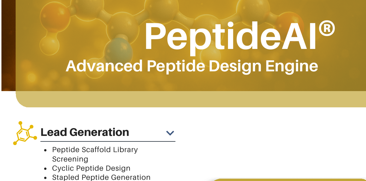 PeptideAI® designs next-generation peptide therapeutics with enhanced stability, selectivity, and bioavailability. Our AI platform enables rapid optimization of peptide sequences for diverse therapeutic applications.